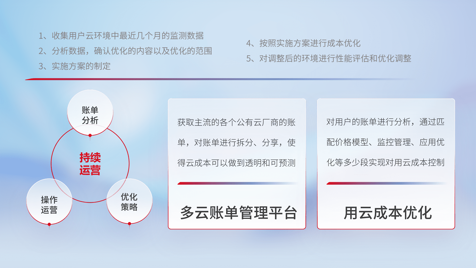 监控业务系统资源开销,,对资源的消耗精确计量,,,,实现费用的透明化管理,,,不断提升资源使用率,,,,调整资源购买方式,,,,降低资源费用成本,,,,用云成本可预测、、用云费用可优化,,云资源配额有据可依。。